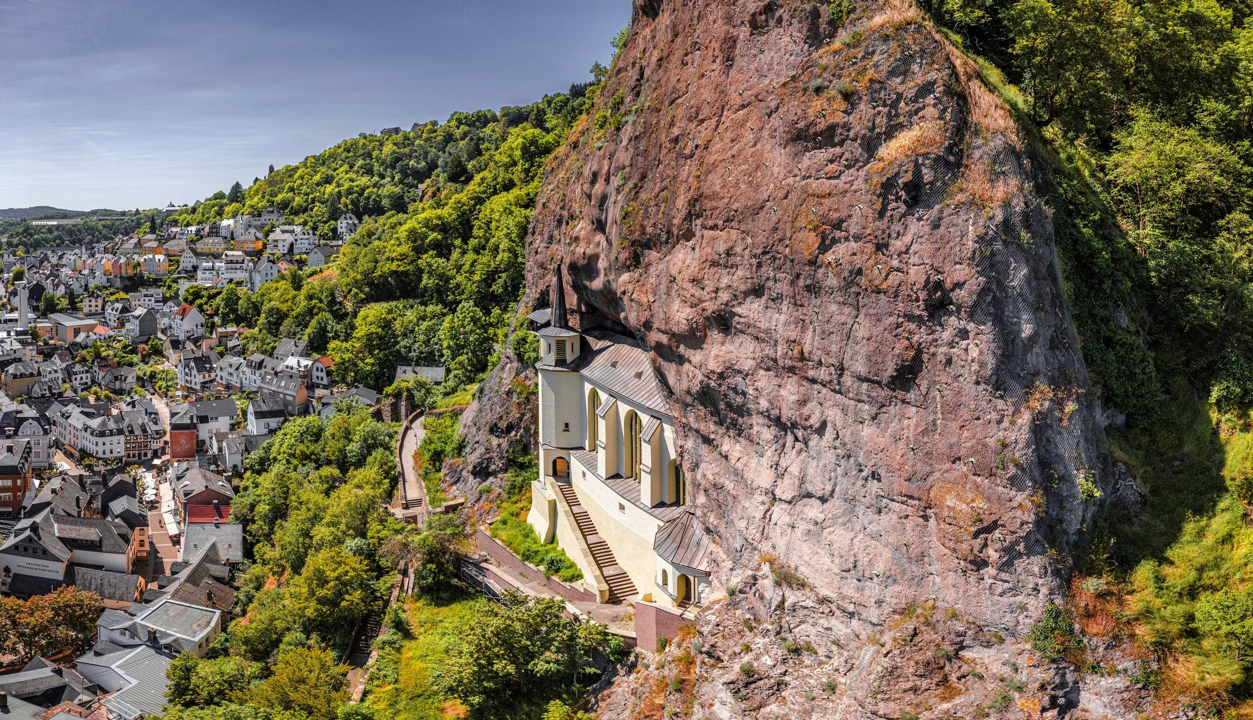 Spektakulär thront sie über der Altstadt, in einen mächtigen Felsen gebaut, mit spannenden, dramatischen Sagen und Geschichten, die sich um sie ranken: die Felsenkirche in Idar-Oberstein