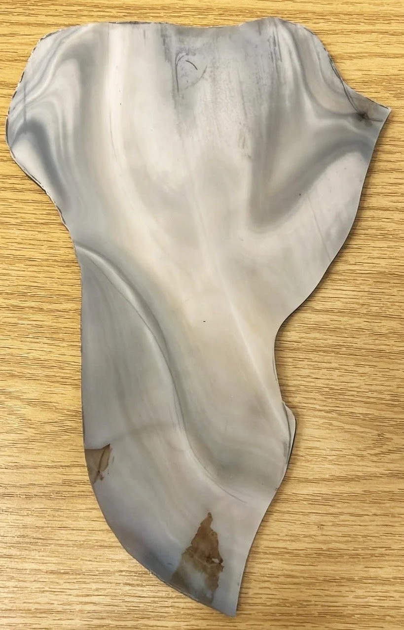 Die Bruchkante zeigte bereits die jetzige “Gesichtsform”, man musste kaum etwas wegschleifen und Andreas Künstler-Fantasie sah nicht nur das Gesicht, sondern auch die nicht unübliche Darstellung der Mondsichel als Gesicht im Profil darin. Nach und nach kamen in dieser Assoziation mit dem Weltraum, der Galaxie, dann der Planet Uranus - als blauer Lapislazuli - und ein schimmernder Opal, der die Venus symbolisiert, dazu. Und auf der rechten Seite zieht außerdem der Halley’sche Komet seine Bahn.